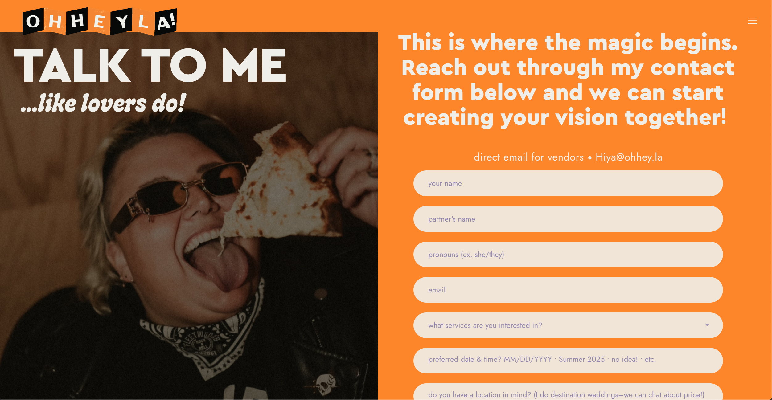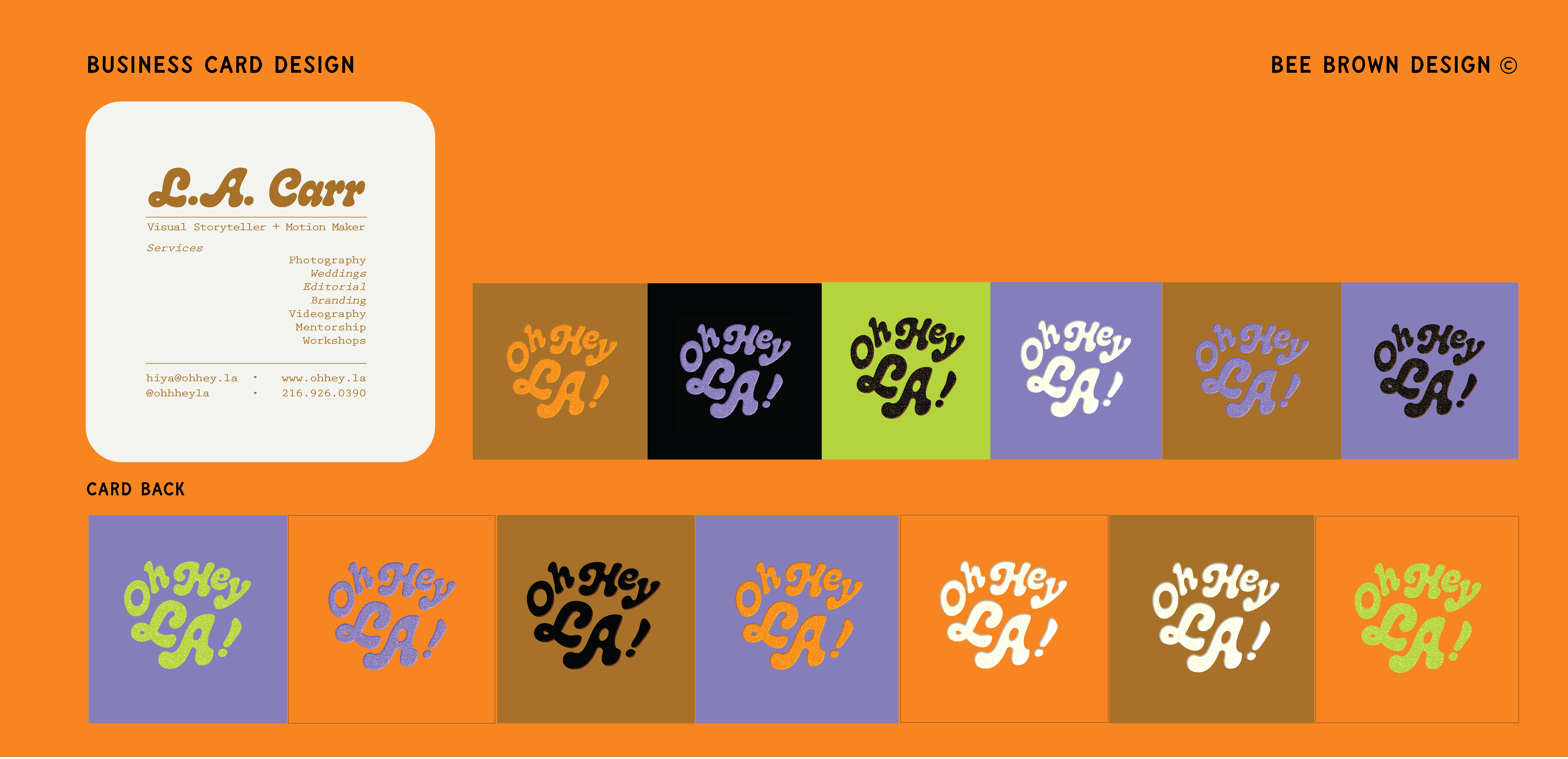 Oh Hey LA! was a rebrand for photographer + storyteller, LA Carr, formerly operating as Manifest Media Haus. Carr needed for their visual identity to finally reflect them as a creative. It was important to convey my client’s love of glam-era iconography whilst keeping the brand contemporary and engaging to all. Their target market are those members of the 2SLGBTQIA+ community wishing to be photographed who enjoy breaking with tradition and embracing fun & adventure.